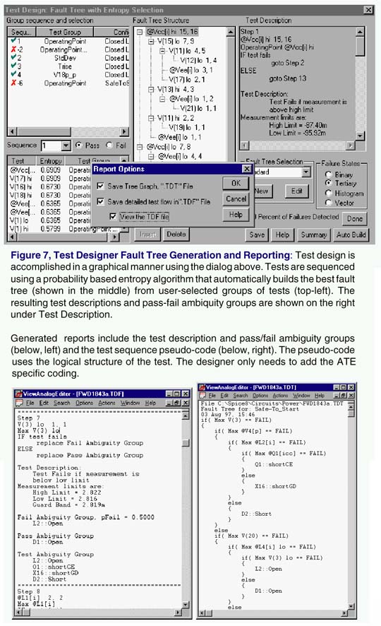 The combination of automated failure simulation and test sequencing is truly revolutionary. The time-savings over manual methods is DRAMATIC. This powerful capability ex-tends SPICE well beyond its current single simulation-oriented boundaries, and provides a framework for automatic test program set design and FMEA.