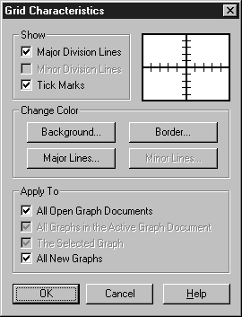 A new Grid Characteristics dialog (Figure 3) allows the user to control the grid line characteristics, line color, border color, and background color.
