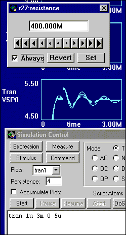 Intusoft is committed to being the best supplier of CAE tools and techniques for power electronics design. To do this, we use our tools to produce the kinds of designs that our users are making. An example of this is Magnetics Designer version 4.1.0, which provides a new sector winding capability along with improved IsSpice models. Using this new transformer design technology, we designed an off-line 80-watt, multiple secondary switched- mode power supply. While creating this design, it became evident that a large signal state-average model would be of great benefit in optimizing the power supply behavior using IsSpice interactive features. Figure 3 illustrates the ease of damping the time domain transient at turn-on by adjusting the damping resistor, R27. The average model used in this simulation ran in under one second, while a cycle-by-cycle switching solution takes over 300 seconds. Clearly, the speed of the simulation affects the quality of the design. For this example, it is unlikely that the user would have run a parametric study of the turn-on transient and would have had some difficulty constructing a laboratory test set that could repetitively switch the input power. You can see in Figure 3 that the reason for performing the simulation is to study circuit behavior, vary parameters that may be impossible to do on a breadboard, and learn about destructive operating points BEFORE blowing up the breadboard. The need for inserting a damping resistor is less than obvious and the lifetime of an oscillating power supply is likely to be shorter than the time required to correct the problem. The average model is widely used for small signal control loop stability analysis. The frequent association with small signal analysis gives the incorrect impression that average models are poor choices for large signal behavior. For development of this model, we also wanted toinclude an estimate of behavior near the Nyquist frequency because the interactive adjustment of the circuit parameters can easily lead to excess control system bandwidth. We wanted to see instability caused by excess bandwidth. |