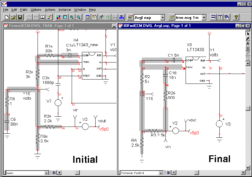 SummaryThe complete model for Transient and Average operation is in 1243is.dwg in the LT1243new configuration. This was saved in a sub-drawing that is used in Forwardccm.dwg and 80FwdCCM.dwg. Finally, the resulting sub-circuits have been added to the Power Supply Designers libraries for all of the LT12xx family parts and are identified as Improved Performance. You can access the library updates and .dwg files on our web site in the paid maintenance support page for ICAP/4 Power, ICAP/4 Professional, Test Designer and all Power Deluxe packages. Newsletter Subscribers: You can also get the .dwg files using your private password. |