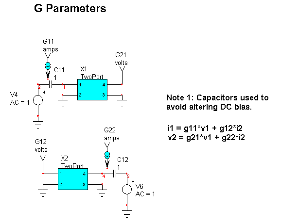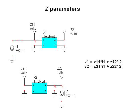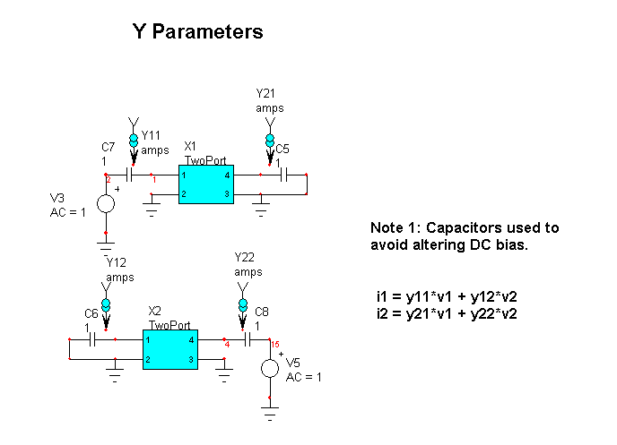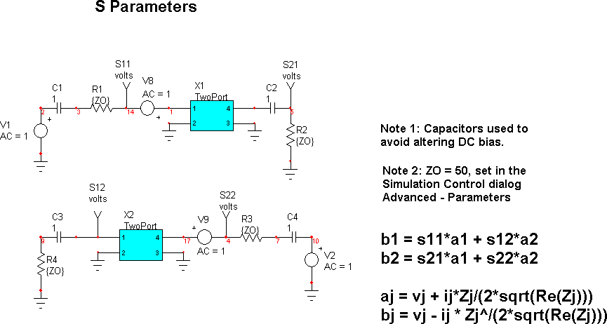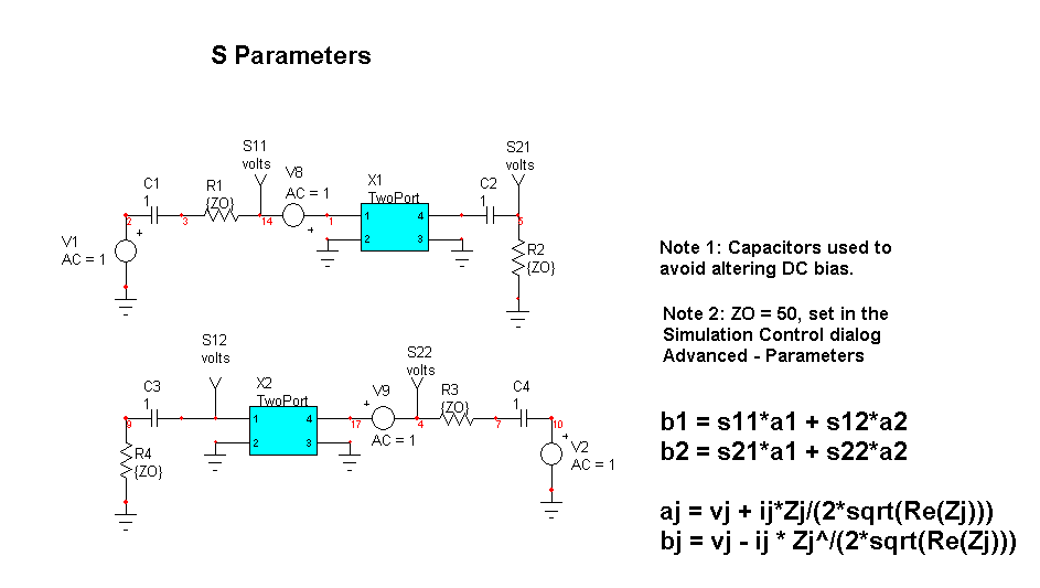 After that, open the simulation control dialog and pick the test configuration for the parameters you wish calculated and run the simulation. The parameters will be in the output file. Currently, TwoPort.dwg calculates Y, Z, H, G and S parameters.