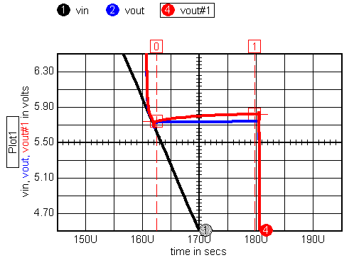There are several ways to conduct parameter sweeping in ICAP/4. We can sweep families using the DC operating point (DCOP) capability originating in Spice2, the Alter dialog from SpiceNet, or by using the SWEEP template. Still, that’s not enough. If you were to build a curve tracer in a transient analysis, then you would step the outer parameter as a function of time. That would create one long plot while you want the x-axis to retrace every time the outer parameter steps. This is the same problem that must be solved to produce an "eye" diagram. In each case we need an x-axis vector that resets to its starting point at regular time intervals. When Scope5 sees the x-axis vector returning to its starting point, it assumes that you are plotting a family and it blanks the re-trace line. There are several ways to solve this problem. One way is to make a new vector with the same length as the default vector and then walk through the default vector copying it into the new vector. Whenever we reach a retrace point, subtract a sumtime scalar from all subsequent points, where sumtime = sumtime + timestep. A better approach is to use the mod (%) operator. This operator applies to integers so we need to make a new vector that is an integer with sufficient precision to satisfy our accuracy needs. Then we convert it using the mod operator. In this case we don’t have to walk through each point, the ICL does it for us, which is much faster. The speed gain occurs because the ICL parser does the vector arithmetic for you within a C language for-next loop. Here’s the function we’ll use: