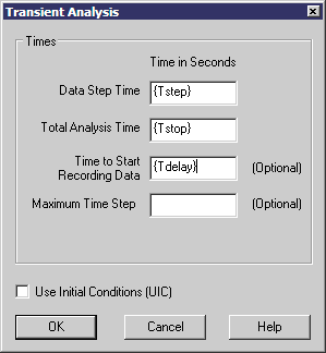 Figure 10: Enter parameters in the Transient Analysis setup dialog for builds > 2450. |