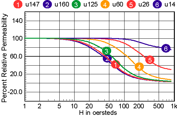Notice that the permeability curves, for example Figure 5, look very much like magnitude vs. frequency plots. When the slope of log(permeability)/log(H) is an integer multiple of 20db/decade, then an even polynomial ratio can be used to describe the curve, and in theory an integral can be found. Note: the restriction on even values arises from the symmetry of permeability for negative MMF-