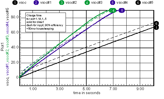 Plugging in the power values into the array simulation results in the data shown in Figure 8. Unfortunately, the power loss from housekeeping power and converter efficiency wipes out the MPPT gain. So, it’s unnecessary to proceed further with the design because the simpler direct charge method produces superior results.
