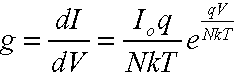 Solving for conductance Then substituting I back into the conductance equation This result holds over a remarkable range of current and is the basis for nearly all IC multiplier circuits.