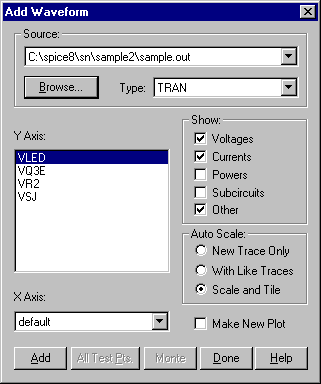 mix and match different plot types (i.e., Tran, AC, etc). Added waveforms
