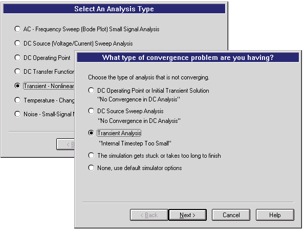 Wizard assists in setting up simulation for the new SPICE user